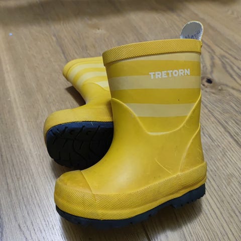 Tretorn-merkkiset lasten kumisaappaat tytöille, koko 20. Väri vaaleanpunainen, valkoinen pohja. On selkeästi käytetty kunto, mutta pohjat ja varret ehjät eli pitävät vettä.