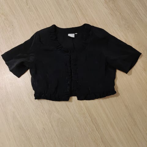Kaunis musta Betty Barclay hihaton takki( toppi) , jossa osittain avoin selkä, toppi on kauniisti koristeltu takaa ja koristeltu strasseilla edestä