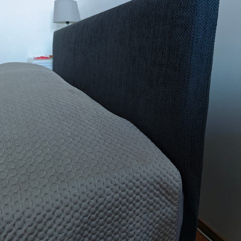 Tummanharmaa sängynpääty. Nouto Pori/Ulvila.