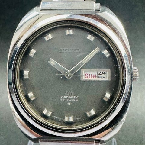 KuvausKotelon koko: 40 mm (läpimitta ilman kruunua) x 47 mm (lippaasta lippaaseen)Dial: Musta kellotaulu hopeisilla merkeillä ja valkoisilla käsilläPäivä/päivämäärä: Quickset toimiiKristall: Lasi; joitakin naarmujaNauha: AlkuperäinenLug-leveys: 20 mmPituus mukaan lukien kellotaulu: 18 cmHuoltohistoria: TuntematonVakuutettu toimitus seuraavilla kanavilla:Paikallinen toimitus: Paikallinen rekisteröity postilähetysKansainvälinen toimitus: DHL ExpressTÄRKEITÄ HUOMIOITA!! HUOMIOI ENNEN HIEDONTAAN!!1. Kellon myydään siinä kunnossa kuin se on. Sitä ei, ellei toisin mainita, takuuteta eikä ajoitusvarmuuteen, vedenpitävyyteen jne. liittyviä vaatimuksia hyväksytä tai käsitellä.2. Ostaja vastaa mahdollisista lisätullauksista ja/tai arvonlisäveroista, joita kunkin maan veroviranomaiset voivat periä. Tarkista siis asianmukaisilta viranomaisilta, jos et ole varma, ja anna tarjouksen sen mukaan. Mikäli ostaja ei noudata verojen maksua ja vastaanottoa, ostaja on silti vastuussa kaikista toimitus-, tullauks- ja muista hallinnollisista kuluista.3. Mikäli toimituksen jälkeen ostajan omasta harkinnasta kauppaa peruutetaan, ostaja vastaa kaikista palautuslähetyskuluista sekä maksettavista hallinnollisista ja tullimaksuista, jotka aiheutuvat kellon palauttamisesta ja uudelleenmaahantuomisesta.4. Kansainvälinen kuljetus (lukuun ottamatta tullimuodollisuuksia ja viimeistä mailia -toimitusta) kestää yleensä enintään 2 viikkoa, mutta voi kestää kauemmin riippuen maasta ja paikasta, juhlapyhistä, Ukrainan sodasta, maailmanlaajuisesta pandemiatilanteesta ja niin edelleen.5. Huomaa myös, että meillä ei ole vaikutus- tai hallintamahdollisuutta siihen, kuinka nopeasti kunkin maan tulliviranomaiset käsittelevät paketin saapumisen jälkeen maahasi. Tämän vuoksi tarkista tulliviranomaiselta/postipalvelulta, kun tavara saapuu maahan.