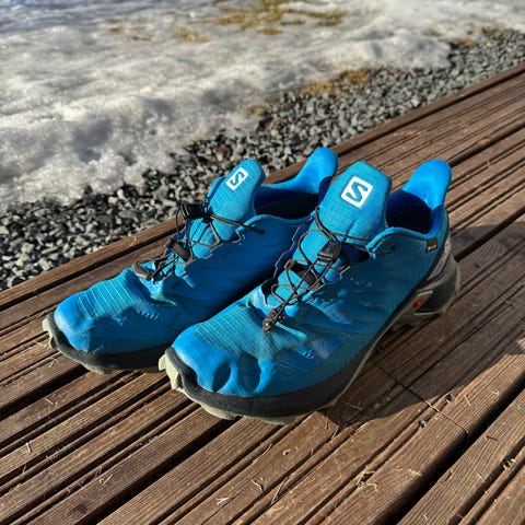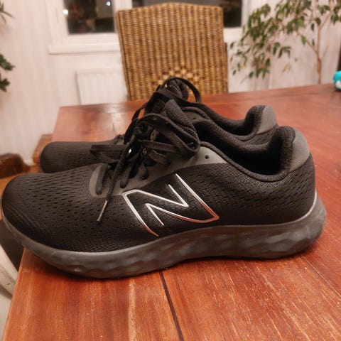 Karhun juoksukengät. Kengän koko on EU 44,5 (UK 10, US 11). Väri on vihreä mustilla yksityiskohdilla ja valkoisella välipohjalla. Päällinen on hengittävää verkkokangasta, sisäosa vaaleaa tekstiiliä. Nauhakiinnitys. Pohjassa on kuminen ulkopohja, jossa kulutuspintaa eri alueilla. Soveltuu juoksuun ja muuhun liikuntaan.