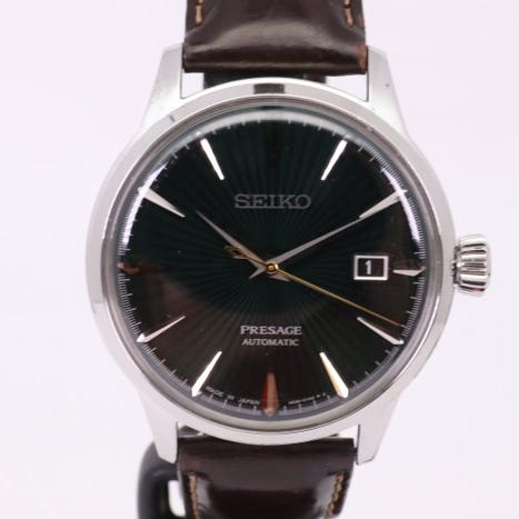 —// KUVAUS //—** Made in Japan **Malli: Seiko Presage SSA343J1 Miesten automaattinen pikkukellosepän kelloMateriaali: Ruostumaton teräs Kellon numero: Hopea Kellon koko: 40 mm ( ilman kruunua )Sopivuus: Jopa 19,5 cm ranteeseen.Liikkeet: Seiko 4R57 automaattinen liikeVarantaa: 40 tuntiaToiminnot: Aika- ja sekuntien mittaus, hacking, manuaali- ja automaattikierro, vuotoaaltoiset sekuntisormen liike, varaustilan näyttö—// TOIMITUS SISÄLTÖ //—Originaalilaatikko: Kyllä * (Seiko matkakudetti kuten kuvissa. Pussi on hieman vänkyrä, katso kuvat. Puuttuvat Paper Boxit)Originaalipaperit: Ei —// TILANNE //—Laatikon kulumaa: -(*) [minimikelmpeä kulumaa rungossa pienillä hiusviivoilla. Lähellä virheetöntä]Takakannen kulumaa: * [minimaalinen kuluma, takaketterä näkyvä]Mitaleiden jalokaula: * [hyvin pieni kuluma. Lähes virheetön] Kellon osoitin: - Kiekon kulka: - Telaketin kuluma: * [minimaalinen kuluma, likipitäen tahraton] Kruunun kuluma: -(*) [minimaalinen kuluma]Rannekkeen tai Nauhan (kts. yllä oleva sopivuus): * [Seiko nahkarannekkeet, Seiko S/S perhaskukkoKELLOVAIHTEEN STANDARDI RATING:- None (Paras)* Epäoleellinen** Pieni*** Keskiverto**** Raju***** Vääntynyt (Huonoin)(*) puoli tähteä / välimuoto— // YLEISARVIO //—ARVIO: S / A+ARVIO-OPAS:N - Uutta vastaava ilman kulumaa tai käyttämätön.S - Lähellä mint Condition, pienet kulumamerkit.A+ - Erittäin hyvä kunto, käytetty vähän kulumamerkeillä.A - Hyvä kunto pienin kulumamerkein tai naarmuin.B+ - Kohtuullinen kunto selkeillä kulumamerkeillä tai naarmuilla.B - Huono kunto raskailla kulumamerkeillä tai naarmuilla.V - Yli 20 vuotta vanha ja vintage-kunto, ilmeisiä kulumamerkkejä ja naarmuja.ND - Pelastuskelpoinen kunto, toiminnallisesti puutteellinen tai huoltoa vaativa. Puuttuvia osia saattaa olla.—// SHIPPINg-MUOTO //—PALVELIJA: FedEx Economy tai vastaava—[[[ ASIAKKAAN HUOMAUTUKSET ]]]—[KUVAT]- Kaikki kuvat eivät ole retussoituja (paitsi sarjanumerot ovat turvatoimen vuoksi piilotettuina). Mitä tahansa kuvaan näkyväävianomaisia ei mainita kuvaustekstissä, ne katsotaan kuviksi. Kuvat puhuvat tuhat sanaa, joten pyydämme katsomaan kuvat huolellisesti ennen tarjouksen tekemistä, koska ne muodostavat olennaisen osan kuvausta. Arvostan asiakassuhdettani, joten en halua aiheuttaa pettymystä kun tuotteet saapuvat epätasapainoisina.[TARKKUUS]- Karkeasti jokainen kello testataan vaakasuorassa asennossa (diali alaspäin) täysin rakennettuna käyntivarauksen ollessa täysin ladattu ja katsotaan sopivaksi ajan pitämiseen ennen myyntiä. Tarkkuuteen voivat vaikuttaa muun muassa ranteella käytön kesto, käsien ja ranteen liike sekä jännitys voimanlähteessä. Yli 10 vuotta vanhat kellot saattavat näyttää suurempaa tarkkuuseroa ja epäjatkuvuuksia liikearvon vuoksi.[AITUUS]- Yritän merkitä kaikki vaihdetut osat, jotka pystyn tunnistamaan, parhaan tietoni mukaan. Arvioi kohde kuvien perusteella, koska ne ovat perillä vastaanottavaan tuotteeseen. Kirjallinen kuvaus on apuväline silloin, kun kuvat eivät näytä vikaa täydellisesti. (poikkeuksena uusiksi tuotteiksi jolloin kuvat voivat olla lainattu aiemmista listauksista).[KELLONHOIDON VINKKI]- Kelloa ei suositella käytettäväksi suihkussa tai kylvyssä. Kuuma vesi ja saippua voivat heikentää kellon kumikatteita ja aiheuttaa vuotoja. Höyry on veden hiukkasia vähemmän tiheä kuin veden pisarat ja pääsee helpommin kellon sisälle. Älä käytä kelloa su
