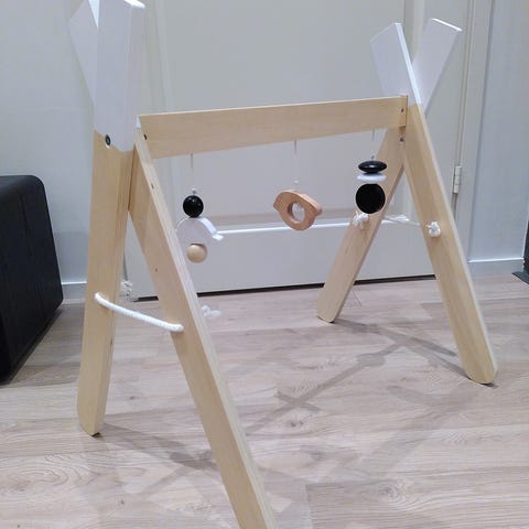 Kaksipuoleinen pehmokirja jonka voi ripustaa pinnasänkyyn tai lelukaareen,peilillä.