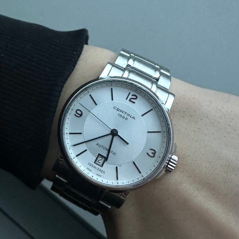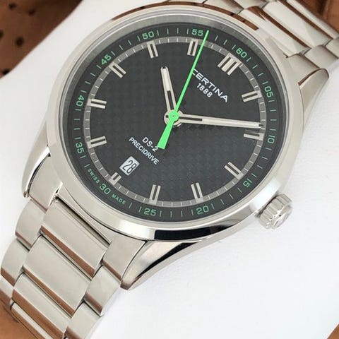 Certina - DS Caimano Automatic - C017.407.11.053.00Kotelo: teräksinenKoneisto: sveitsiläinen ETA automaattiKellotaulu: mustaHalkaisija: 38 mm (kroonia ei lasketa)Lasi: safiirisRanneke: originaali ruostumattoman teräksen rannekeRanteen ympärysmitta: 21 cmKunto: UuusiTakuu: 1 vuosi "de Horlogemeesters"Toimitus: toimitetaan alkuperäisessä laatikossa.lähetys: tämä kello lähetetään rekisteröidyllä kirjeellä (DHL-express).