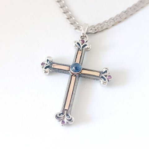 Uusi hopeakaulakoru, jossa 925 hopea risti-riipuksella ja 18 kt keltaista kultaa. Kaulakoru, jonka riipus on valmistettu Enrico Martina - Italian käsityömerkiltä. Laadukkaat yksityiskohdat ja viimeistellyt pinnat.Toimitus vakuutetulla kuljetuksella ympäri maailman.Kaulakoru toimitetaan nimikirjoitetussa Jewelry Box Firmata -korurasiossa. Takuu 24 kuukautta