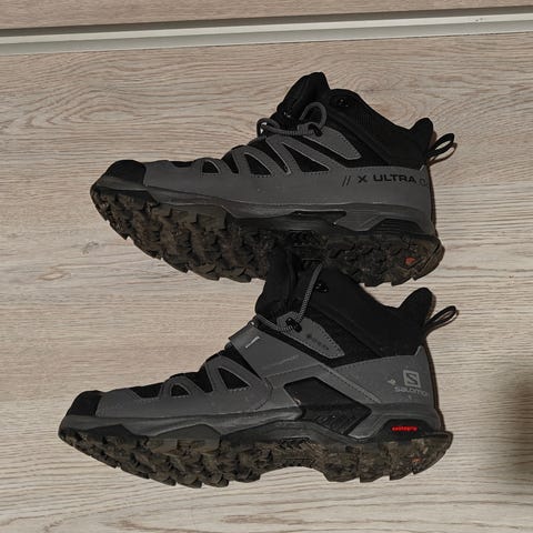 Salomon Extegra GTX vedenpitävät vaelluskengät. Koko 42 2/3. Käytetty n.45min kävelylenkillä, jossa todettu aavistuksen liian pieniksi. Oma kokoni yleensä on 43.