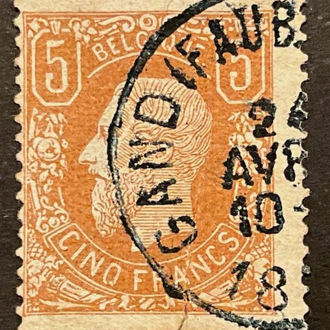 Belgia 1869/1883 - Makaa leijona - 1c vihreä + 5c oranssi - ohut satiininen