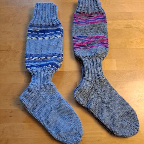 Käyttämättömät, kiiltävät polvisukat, kaapissa lojuneet.