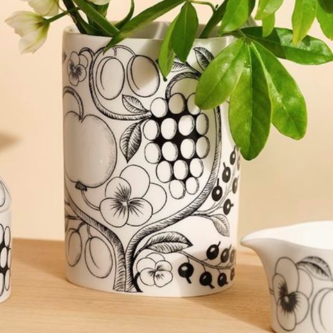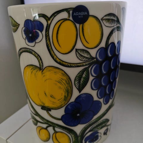 Arabia Paratiisi maljakko keraaminen valkoinen monivärinen kuvitus 2kpl