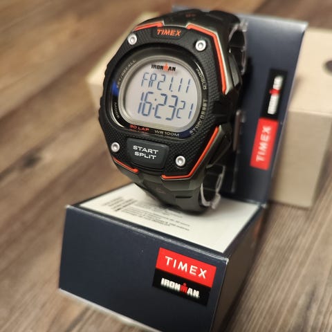 Timex miesten rannekello. Kellossa on pyöreä teräskuori ja teräksinen ranneke taittosoljella. Kellotaulu on musta, siinä on selkeät indeksit ja osoittimet sekä päivämääränäyttö kello kolmen kohdalla. Kellonkehällä on kaksivärinen (sininen/punainen) asteikko. Takakannen läpi näkyy kellon koneisto. Sopii miesten käyttöön arki- ja vapaa-ajan kelloksi.
