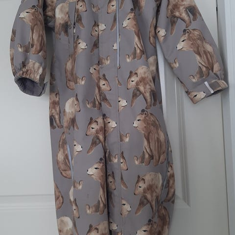 Hyväkuntoinen Tähti Jonathanin vk-haalari / kuorihaalari, koko 98. Veden- ja tuulenpitävä. Kiva harmaa väri. Hieman tummentumaa polvissa ja pepussa, mutta yleisilme siisti. Lahkeissa napit jalkalenkeille. Jalkalenkit puuttuvat.