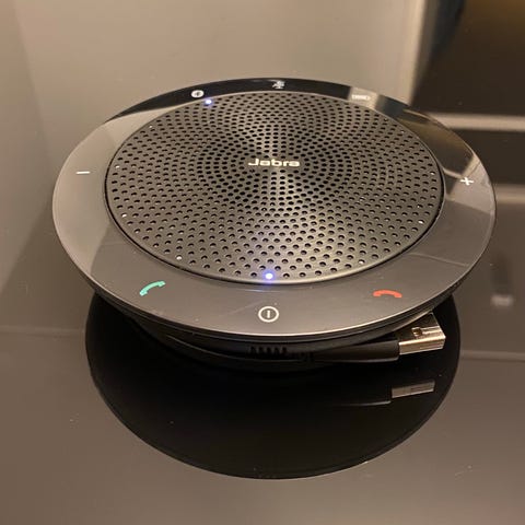 Myydään muutamia kertoja käytetty Jabra Speak 810 MS -kaiutinpuhelin. Integroitu sähköjohto ja audiojohto. Kaiuttimessa 3.5 mm liitäntä Bluetooth -yhteyden lisäksi, sekä USB-portti esim. puhelimen lataukseen.