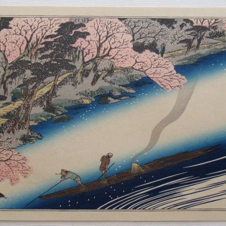 Alun perin noin vuodelta 1835, jokainen kappale on todennäköisesti 1980-luvulla uudelleen kaiverrettu painos Yuyudo-yrityksen toimesta.Taiteilija: Utagawa Hiroshige(1797-1858)Lehtikoko: noin 22.5×33.3 tuumaa joka kappaleessa.Kunto:(yläosa) Vähän runsaasti tahroja.(keskimmäinen) Hieman tahroja.(alimpana) Yleensä hyväkuntoinen.Toimitus on suoritettu Japan Postin kautta, pakattu tiukasti, seuranta sekä vakuutus.Se ei ole "express air" vaan "tavallinen", toimitusaika on noin 2–3 viikkoa sinulle."