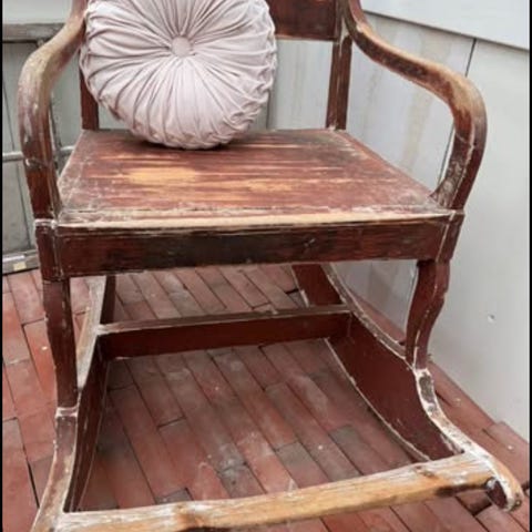 Hyvässä kunnossa oleva puinen keinutuoli jousilla.
