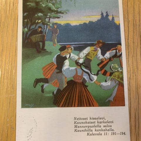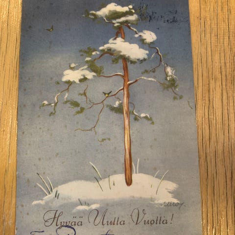 Tässä on Martta Wendelinin 1940- ja 1950-luvulla piirtämiä joulukortteja. Kortit maksavat 3 euroa kappaleelta. Postimaksu on 2,75 euroa kirjeessä 50 grammaan asti ja sitä painavampi 250 grammaan asti maksaa 5,50 euroa.