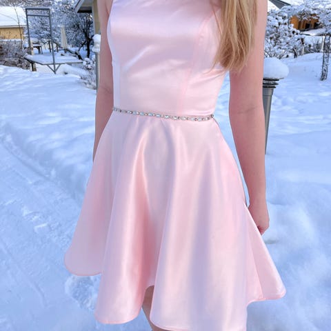 Kaunis mekko kesän juhliin. Koko 34, mutta menee myös kokoa 36 käyttävälle takana olevan nyörityksen vuoksi. Tule sovittamaan Palokkaan.