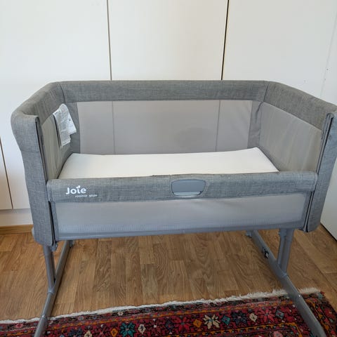 Ostettu uutena Jollyroomilta 10/25 (ovh. 129,90), ollut lähinnä pölyttymässä kun vauva nukkunut perhepedissä paremmin. Olisiko muutaman tunnin yhteensä nukuttu. Kunto siis kuin uusi. Saa kasattuna tai purettuna, mukana kantopussi. Sängyssä olemassa kiinteä patja mutta mukaan saa halutessaan äitiyspakkauksesta tulleen patjan joka menee sänkyyn täydellisesti, patjan reunoilla kellastumista vaikkei ole siis käytetty ja ollut lakana suojana. Liikkuu sivuttais-suunnassa. Hihnat mukaan jotka saa vanhempien sänkyyn kiinni. Vain nouto. Kulkee tarvittaessa TRE-hkyrö.