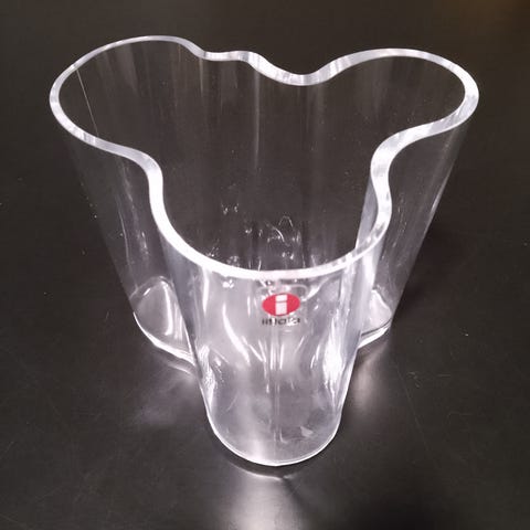 Iittala Aalto maljakko, korkeus 95 mm, kirkasta lasia.