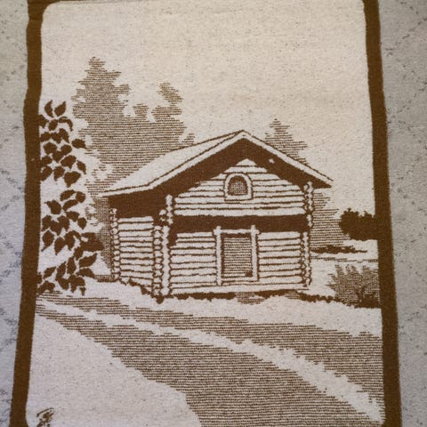Seinävaate, lato/aitta. Mitat n.106cm x 87cm.