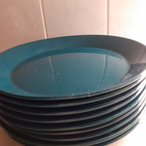 Myydään Teema-astioita. 10 kpl ruokalautasia, 6 kpl keittolautasia, 14 kpl leipälautasia, 10 kpl murokuppeja ja kaksi kahvikuppia (1,5 dl) asetteineen. Muutamassa leipälautasessa pieni lohkeama reunassa.