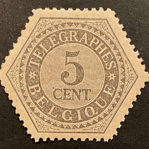 Belgia 1871 - Telegraafzegel - 10c violetti - postfris, upealla