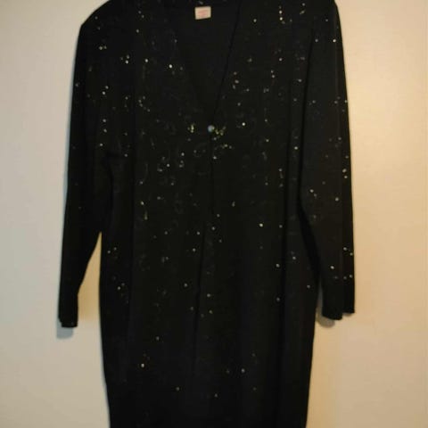 Vastaa kokoa 48. Kangas joustaa, siinä on ohut pliseeraus, sopii vaikka juhliin. Annan tarkempia mittoja ja lisäkuvia tarvittaessa. Postikulut lisätään.