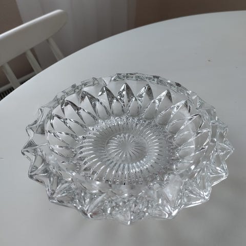 Käsinmaalattu, ulkomailta ostettu tuhkakuppi. Uusi, koristeena ollut kääpinperällä.