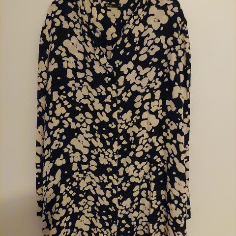 Myydään kerran päällä ollut Your face paitis. Väriltään musta pohja ja beigen ja valkoisen värisiä kuvioita. Koko reilu 40. Kai-kai n.55cm, olka-helma n. 78cm.
