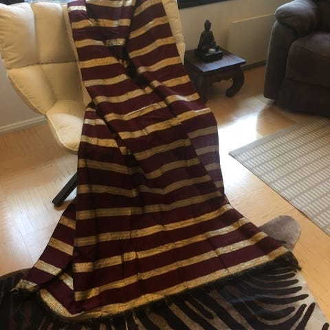 Viininpunainen / kultainen / hopeinen kangas 100 X 190 cm