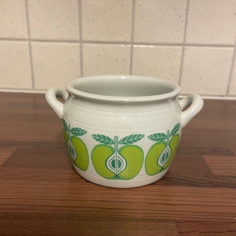 Myydään Arabian vanha, hienosti säilynyt ruukku. Samankaltainen kuin Pomona-sarjan ruukku, mutta on mahdollista, että onkin jotain muuta sarjaa. Päätyi minulle perintönä muiden Arabian Pomona-sarjan ruukkujen mukana, muut tunnistan Pomonaksi.