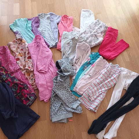 Lasten t-paitapaketti tytöille 16 kpl, koko 110/116-122cm. Perus siistit ja ehjät t-paidat, osa yli pepun pituiset. Yksi t-paita+ caprit setti. Voin lähettää. Hp.20€. Mahdolliset postikulut+8,90€.