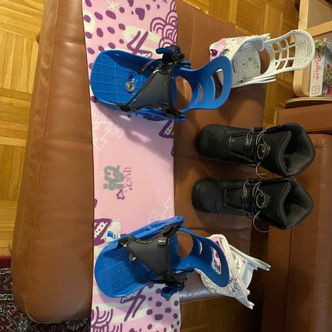 Myydään seuraavalle hurjapäälle hyväkuntoinen K2 lasten lumilautasetti. Siteet ovat vaaleanpunaiset ja säädettävät, ja ne on tarkoitettu lasten kokoluokkaan. Sopii laskettelurinteisiin ja lumilautailun harjoitteluun lapsille.