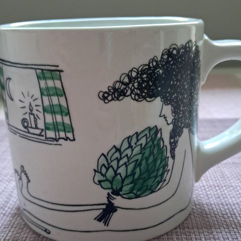 Arabia vintage muki jossa sinivalkoinen kukkakuvio ja pystysuorat uurteet kupin sivuilla. Keräilijälle löytö👍Materiaalina lasitettu keramiikka (fajanssi) puhalluskoristelu. Kupin pohjassa on Arabian piippuleima ja numeromerkintä. Ajoittuu näin vuosille 1930-1940. Tilavuus on 3 dl. Yhdessä reunassa vähän ’röpöllystä’ ei ole rikki, kuuluu ilmeisesti materiaalin luonteeseen.