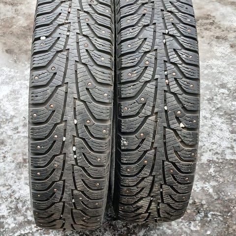 Nastarenkaat henkilöautoon. Kuvissa näkyy neljä rengasta, joissa on nastoitus talvikäyttöön. Soveltuvat henkilöauton talvirenkaiksi. Tarkemmat tiedot, kuten koko, merkki ja malli, kannattaa tarkistaa renkaiden kyljestä.