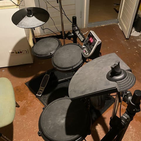Hyväkuntoinen ja täysin toimiva Alesis Nitro (Nitro Module) -sähkörumpusetti uuteen kotiin.