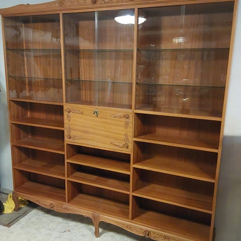 Täyspuinen wanha kirjahylly