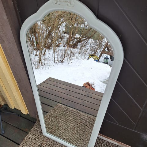 Peili on painava,joten noudolla Haarajoelta. Rivitalo, maantasalla. Ei tarvitse kantaa kaukaa autoon.