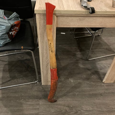 Billnäs vesuri. Varsi ehjä. Terässä ruostetta, muutoin ehjä teräkin.