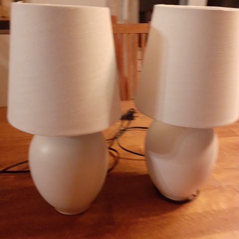 Kaksi valkoista Northlight pöytävalaisinta, joissa on kangasvarjostimet.