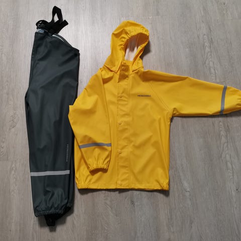 Sadetakki ja sadehousut Ciraf. Koko 116. Polvessa on pieni tahra, eikä siinä ole jalkalenkkiä.