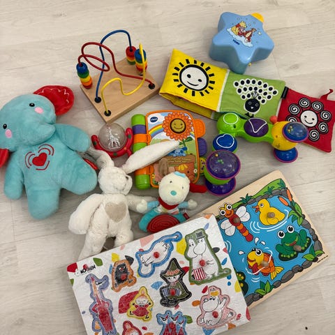 Vauvan leluja ja muutama puinen auto. Kunto hyvä. Kaikki kerralla. h. 20e