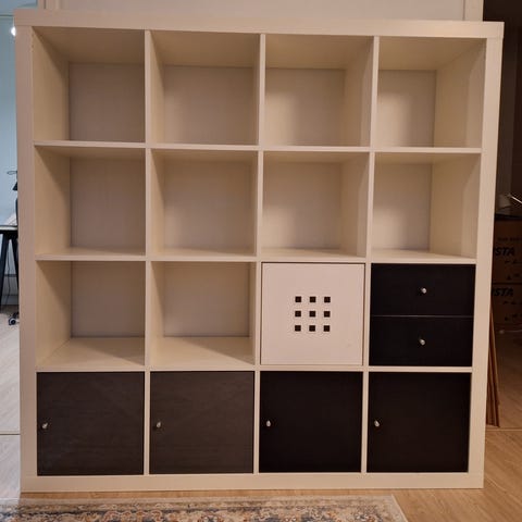 Myydään muuton takia tv-tasona ollut Ikean kallax/expedit hylly 8-lokeroisena. Korkeakiiltovalkoinen, pinnoissa jo käytönjälkiä, mutta yleisilme siisti.