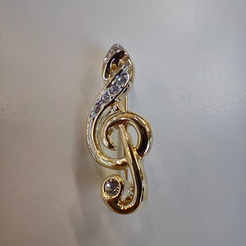 Nuottia tai nuottiavainta kuvaava rintaneula n 35 mm. 5 €