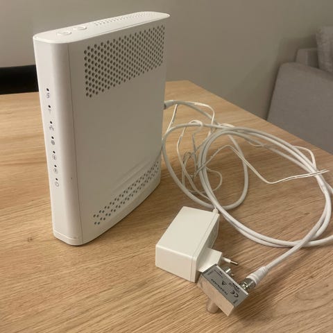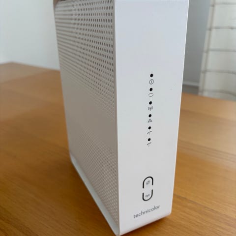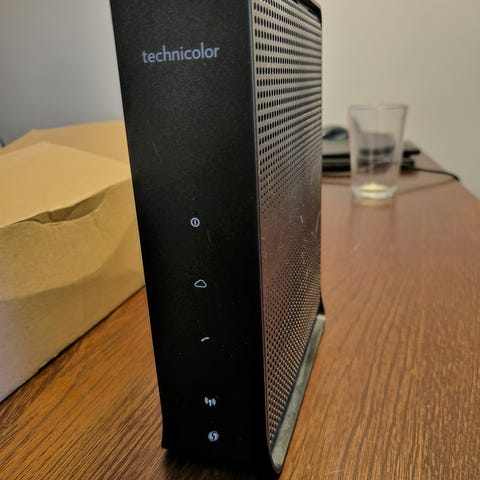 Technicolor kaapelimodeem. Malli CGA4236TCH1. Väri musta. Mukana toimitetaan virtajohto, verkkokaapeli, antenni-/koaksiaalikaapeli ja Data/TV- jakaja.
