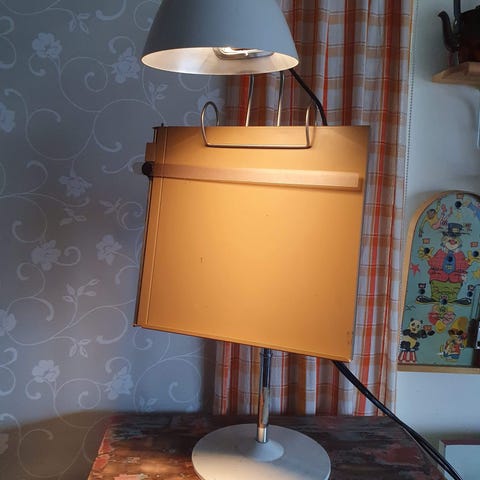 Vanha opetusväline. opetuslaite aurinkokuntamalli. Metallirakenteinen malli, jossa on maapalloa esittävä pallo, pienempi pallomainen kappale sekä valonlähdettä kuvaava lamppu heijastimella. Pyöreässä levyssä on painettuja merkintöjä ja symboleja. Soveltuu esimerkiksi aurinkokunnan ja valon liikkeen havainnollistamiseen opetuskäytössä tai koristeelliseksi esineeksi tilaan, jossa käsitellään maantiedettä tai tähtitiedettä.