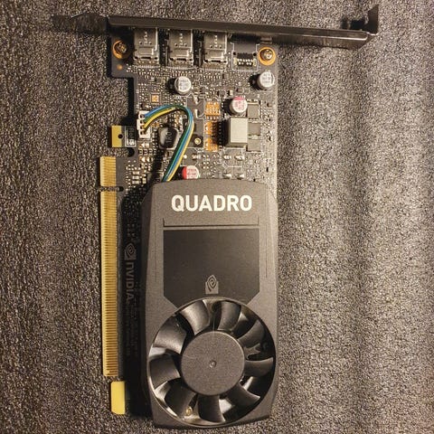 Nvidia Quadro 4 980 XGL näytönohjain 128MB muistilla AGP-väylään. Quadro-versio GeForce 4 Ti 4600:n AGP8X-versiosta (Ti 4800). Loistava yhteensopivuus Windows 98 -peleissä ja Rivatunerilla voi halutessaan "softmodata" GeForceksi (Jotkut OpenGL-pelit voivat pyöriä hieman hitaammin Quadroilla).