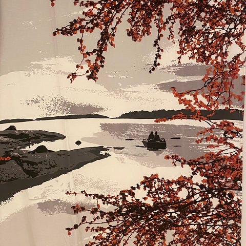 Kaunis mustavalkoharmaa Vallila verho. Nipsuilla ollut kiinni hieman kääntäen yläpäästä, joten muutamassa kohtaa pieni jälki. Ei ole pesty, niin värit ovat alkuperäisessä kunnossa.