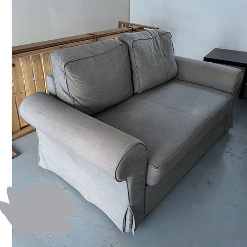 Myydään kevyt ja näppärä vaaleanharmaa kangassohva. Saa helposti levitettyä vuoteeksi. Isompia näkyviä tahroja ei ole. Koko 180x85cm, istuinkorkeus 37cm. Levitettynä koko 180x97cm.