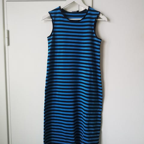 Siistissä kunnossa oleva Marimekon tasaraita -mekko.