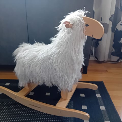 Myydään kids wood keinuhevonen. On kulumaa, ja väritys kynän jälkeäkin löytyy mutta lähtee pesemällä.